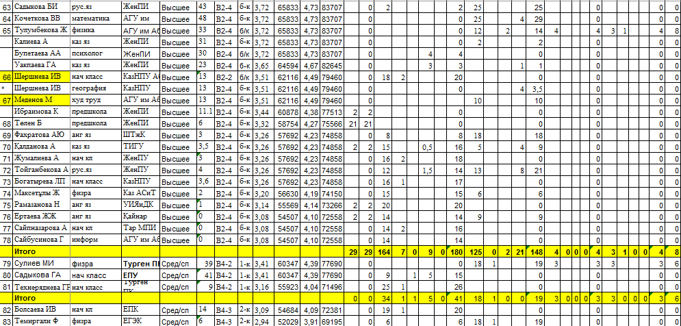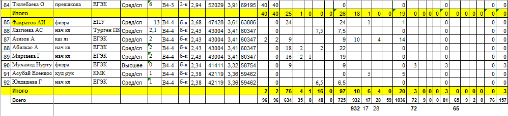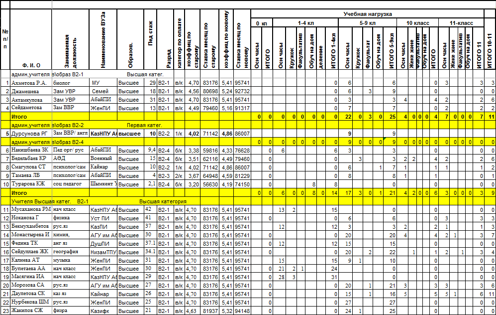 Тарификация тізімі » Д.Қонаев атындағы орта мектеп